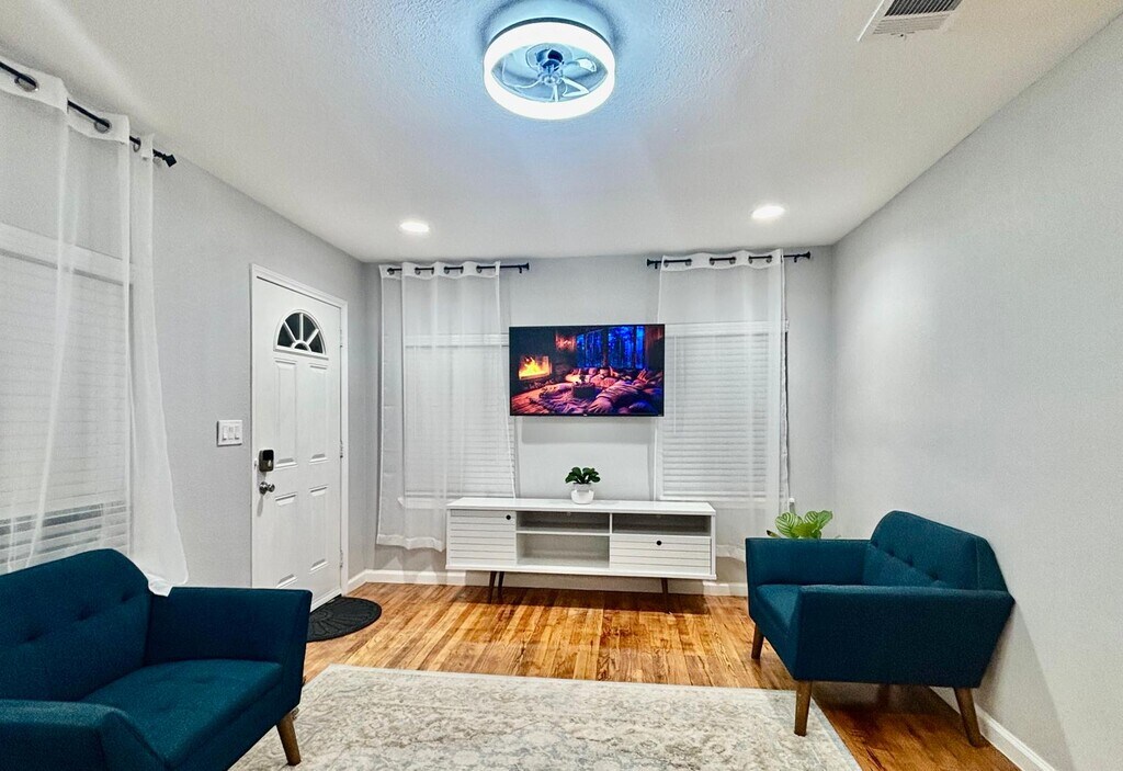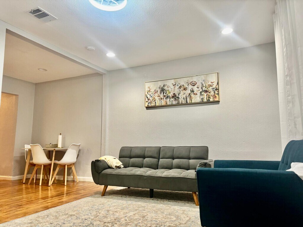 Come enjoy a cozy experience at this newly remodeled 2 bedroom duplex which is conveniently located only 15 mins from downtown Dallas and 12mins from the Bishop Arts District. The home has central AC, smart lock entry for easy check in/out and outdoor security cameras. Washer & dryer in unit and ample driveway parking that fits up to 4 vehicles. Perfect home for traveling professionals, adventurers or mid-term stays. The space Enjoy the close proximity to downtown Dallas at this newly remodeled property. The property offers simple yet comfortable living for traveling professionals, adventurers or mid-term stays Guest access Guest will enjoy seamless, contactless check-in /check-out with a keyless smart lock system installed on the front door. There is also an additional exit door in the kitchen area. While going out, please close the door and put your finger on the Yale logo to activate the lock and you will hear the lock closing. Other things to note Living room space: Enjoy the spaced out living room with a sofa-bed couch. Living room also has an air purifier to keep the air in the room comfortable as you enjoy your favorite tv shows on the smart tv. Kitchen: Enjoy the full kitchen with all brand new appliances. Plenty of space and utensils to prepare your meals. Bedrooms: Enjoy the dark curtains and comfy queen bed in each room. An air purifier is also available in each bed room for your comfort. Plenty of closet space and storage and a mirror in each bedroom. Office space with Free Wi-Fi: Get work done in your private workspace, complete with high-speed Wi-Fi. Perfect spot for remote work or holding virtual meetings. No hassle Parking: Park up to three vehicles securely off the street in your private driveway. Security: Home has outdoor security cameras. Property is also located in a secure area and less than 500meters from the Police station. Washer & Dryer available in the unit.