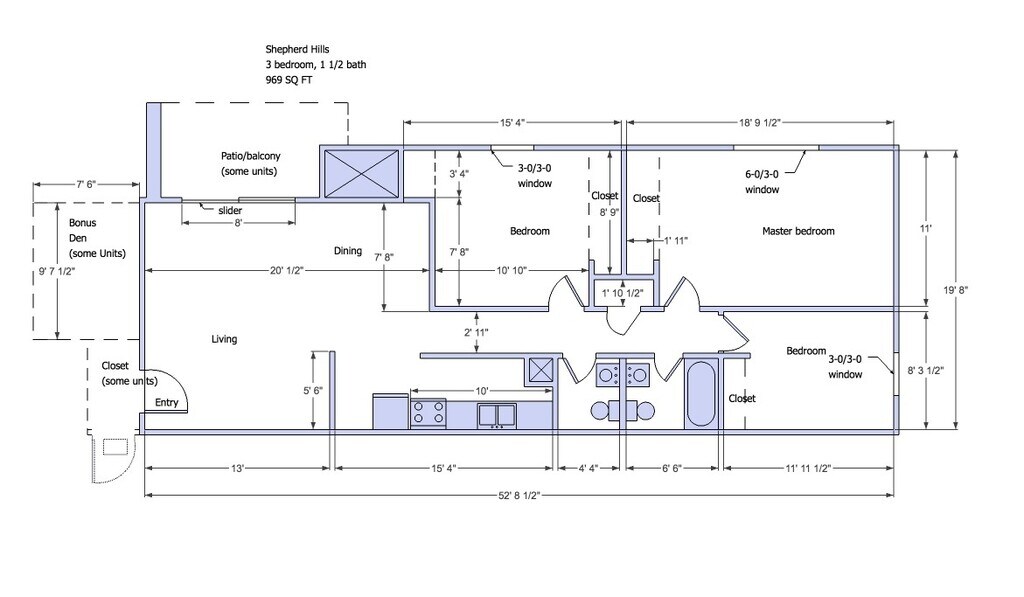 Modelo de apartamento: 3 Bedroom3 Dormitorios, 1.5 Baños, 949 sq ftNo Disponible3 Bedroom - Imagen 1 3 Beds, 2 baths