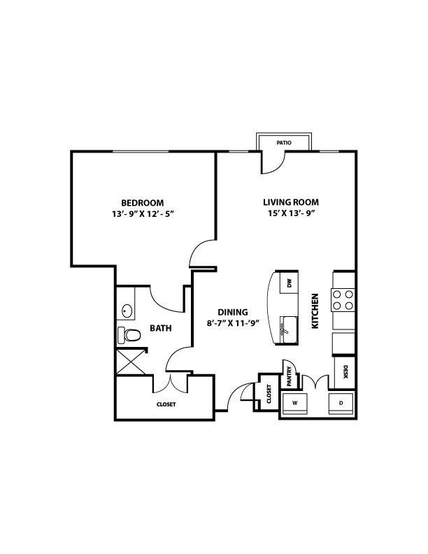 1 Dormitorio, 1 Baño, 824 pies²Disponible AhoraGalería del Modelo