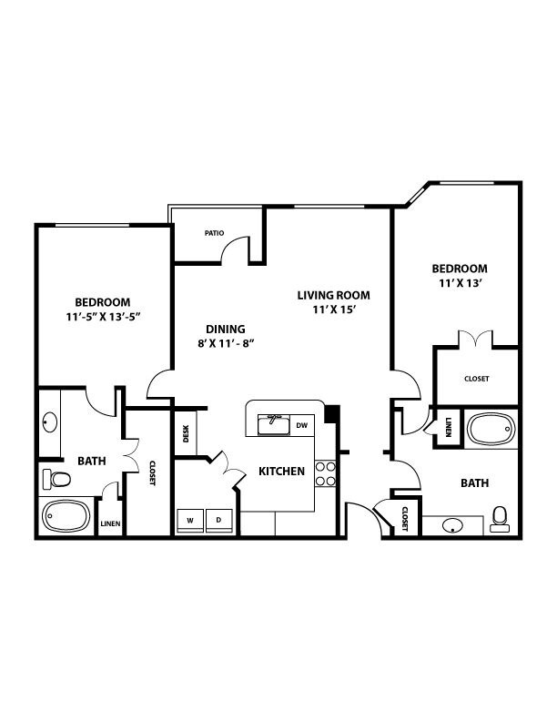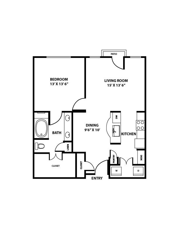 Travis - Plano 2 Unidad de apartamento: 101Modelo de apartamento: Travis$2,2571 Dormitorio, 1 Baño, 771 sq ftDisponible AhoraAustin