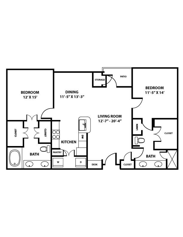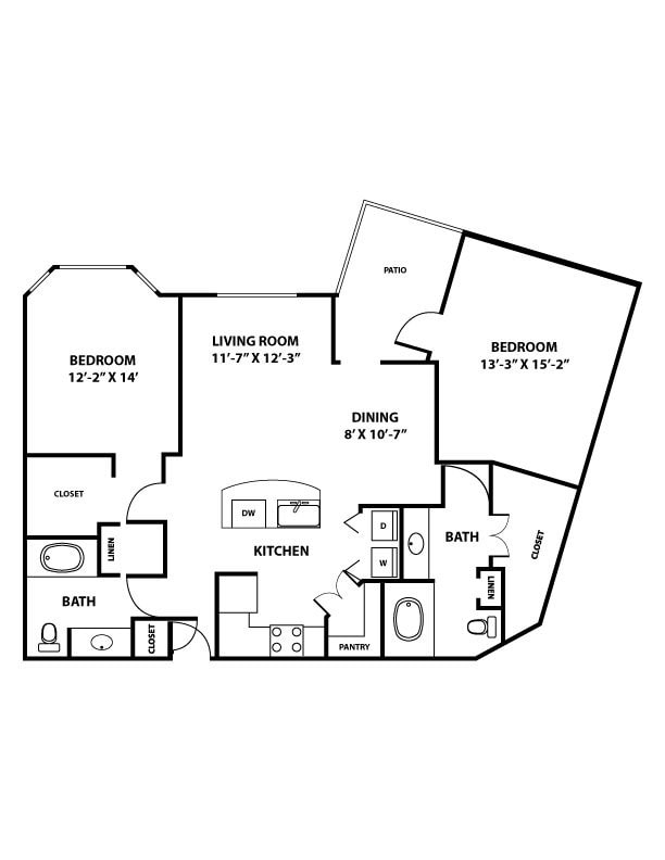 1 Dormitorio, 2 Baños, 926 pies²Disponible AhoraEl más grandeEsta opción tiene las unidades más grandes para este modeloGalería del Modelo