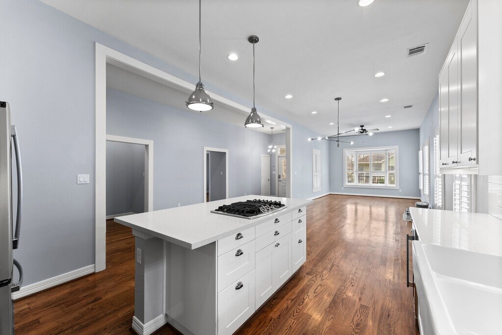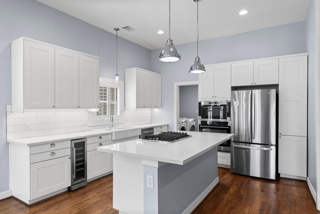 Welcome to this stunning renovated 4 bedroom 2.5 bath home just a stone's throw away from vibrant Downtown Houston. Fully fenced with yard space (front and back) and includes an adorable covered front porch and nice back patio. Upon entering your new home, you will see all the craftsman style details including wood floors downstairs. Open floor plan has a large living area with lots of windows for natural light. The island kitchen is a great entertaining space and the kitchen includes a wine fridge, soft closing drawers and gas cooktop. Primary bedroom with en-suite and large walk in closet is at the back of the home. Two of the secondary bedrooms and full bathroom are downstairs as well. Upstairs you will find the 4th bedroom with half bathroom. This space would be a great game room or office space as well. Home includes tons of storage space throughout. Washer, dryer, fridge and wine fridge stay with the home. Amazing location walking distance to restaurants and stores.