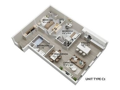 Modelo de apartamento: C1Desde $1,3991 Dormitorio, 1 Baño, 608 sq ftNo Disponible![]()