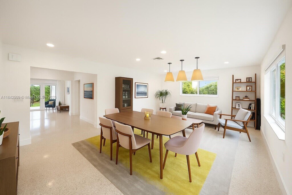 Live just blocks from the shops and restaurants of Miracle Mile in this renovated mid-century modern home! This move-in ready rental blends comfort and functionality, featuring terrazzo and porcelain floors, spacious living areas, and a large, light-filled family room that can double as a guest space or third bedroom. Enjoy the fully air-conditioned attached garage—great for storage, a gym setup, or workspace. Outdoors, enjoy a comfortable patio and fenced backyard, updated pavers, and an additional gravel parking area for convenience. Modern upgrades include new ductwork (2024), hurricane impact windows and doors, a newer roof (2021), PVC plumbing, and a sewer connection (no septic). This home offers peace of mind and a fantastic location—all ready for you to move in to enjoy!