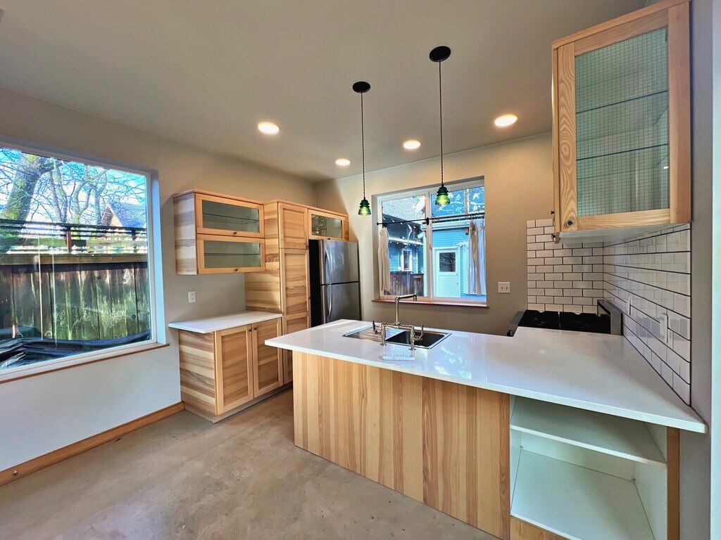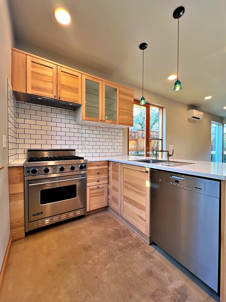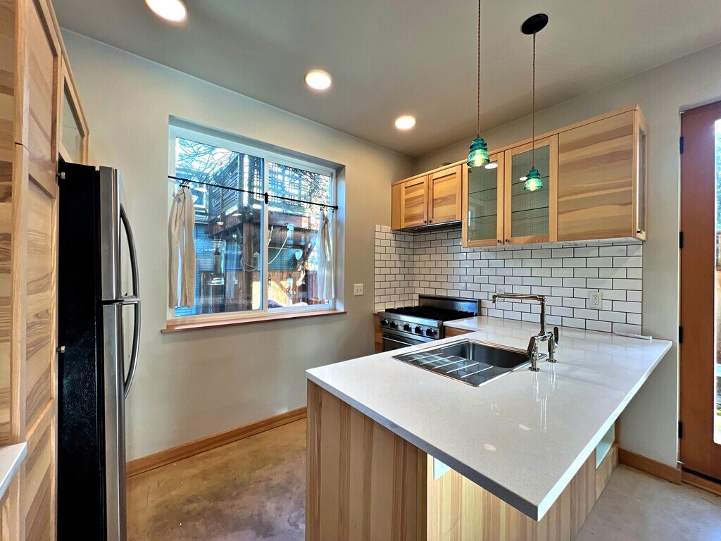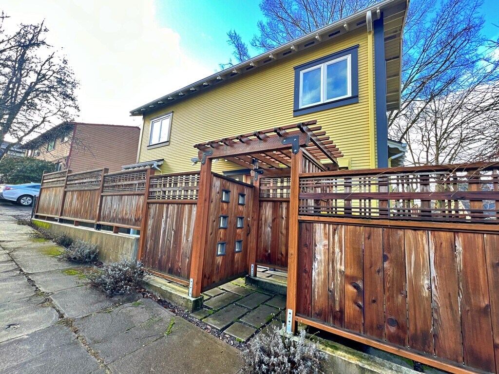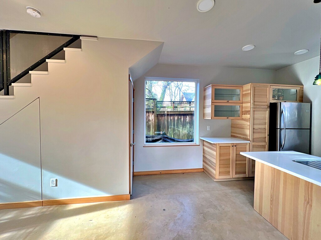In the heart of the vibrant Buckman neighborhood in SE Portland; this exquisite 2-bedroom, 1-bath, 2-story ADU offers a perfect blend of modern convenience and open layout where one spaces flows seamlessly into the next. As you step through the locked gated entry, you'll immediately appreciate the security and privacy this property has to offer. The 850 square feet of thoughtfully designed space features floor-to-ceiling windows in the main living area; creating an inviting atmosphere filled with an abundance of natural light. Prepare culinary delights in the beautiful kitchen, complete with stainless steel appliances throughout, including a gas Viking stove that will delight any home chef. The kitchen's aesthetic appeal is complemented by its functionality, offering a space where cooking becomes a joy. Convenience is key with a washer and dryer conveniently located in-unit, ensuring that laundry day is a breeze. The 2 bedrooms, each with ample closet space, provide comfortable retreats for relaxation and rest. Situated in the Buckman neighborhood, you'll find yourself within walking distance of trendy shops, diverse dining options, and vibrant community parks. The location also offers easy access to public transportation and major thoroughfares, making your daily commute a breeze.