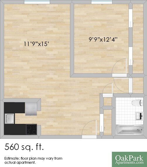 Modelo de apartamento: 421 Elmwood 1 bedroom1 Dormitorio, 1 Baño, 675 sq ftDisponible December 31, 2025![]()