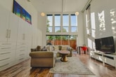 Este muy buscada área de 1HAB (+1 habitación multiuso que cuenta con un amplio armario se puedes utilizar como 2nd habitación). 2 baños, Primer piso, apartamento en esquina con un patio privado al aire libre es un amplio 1.325 ft² y cuenta con cielorrasos altos techos y ventanas del piso al techo. Moderno, renovados y de diseño abierto, resume este impecable espacio luminoso. Las características adicionales incluyen lavadora/secadora en el apartamento, 2 espacios de estacionamiento en garaje privado, amplio espacio de guardarropas, electrodomésticos de acero inoxidable GE, GIMNASIO, patio moderno con fuentes y BRASERO, BARBACOA, PISCINA para mojar y un jacuzzi. Walnut pisos a medida, encimeras de Caesarstone, gabinetes de Italia, y vigas de madera expuestas y los conductos brindan un ambiente lujoso a esta moderna cocina abierta y espacio de estar. En la planta superior, encontrarás habitación principal y baño con ducha independiente. Además, una gran sala de bonificación o 2nd habitación cuenta con un armario de diseño exclusivo que el ancho de la habitación. En el exterior, una cargo adicional de 200 ft² patio con un perímetro de bambú oscura y la privacidad de los árboles maduros y apartado le brindan una sensación de estilo Zen. The UBICACIÓN no puedes ser mejor que esto. A solo 1 milla de la PLAYA & Abbot Kinney, y a unos pasos de distancia de la Marina Marketplace, que es el hogar de tiendas, restaurantes, supermercados, salas de cine, un gimnasio Equinox, Starbucks y la lista continúa. A solo 10 minutos de LAX!