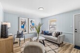 Welcome home to this beautifully renovated 1 bedroom, 1 bathroom unit featuring modern upgrades and stylish finishes throughout. The kitchen showcases quartz countertops, updated cabinetry, and sleek appliances, creating a clean and contemporary space perfect for everyday living and entertaining. Enjoy the bright, open living area with updated flooring, fresh paint, and modern lighting. The spacious bedroom offers great natural light and comfortable living space. Convenient washer and dryer connections are available, making laundry easy and accessible. Located just about 1.8 miles (approximately 5 minutes) from Wake Forest University, this home offers easy access to shopping and dining. This unit combines modern style with comfortable, functional living in a great location.