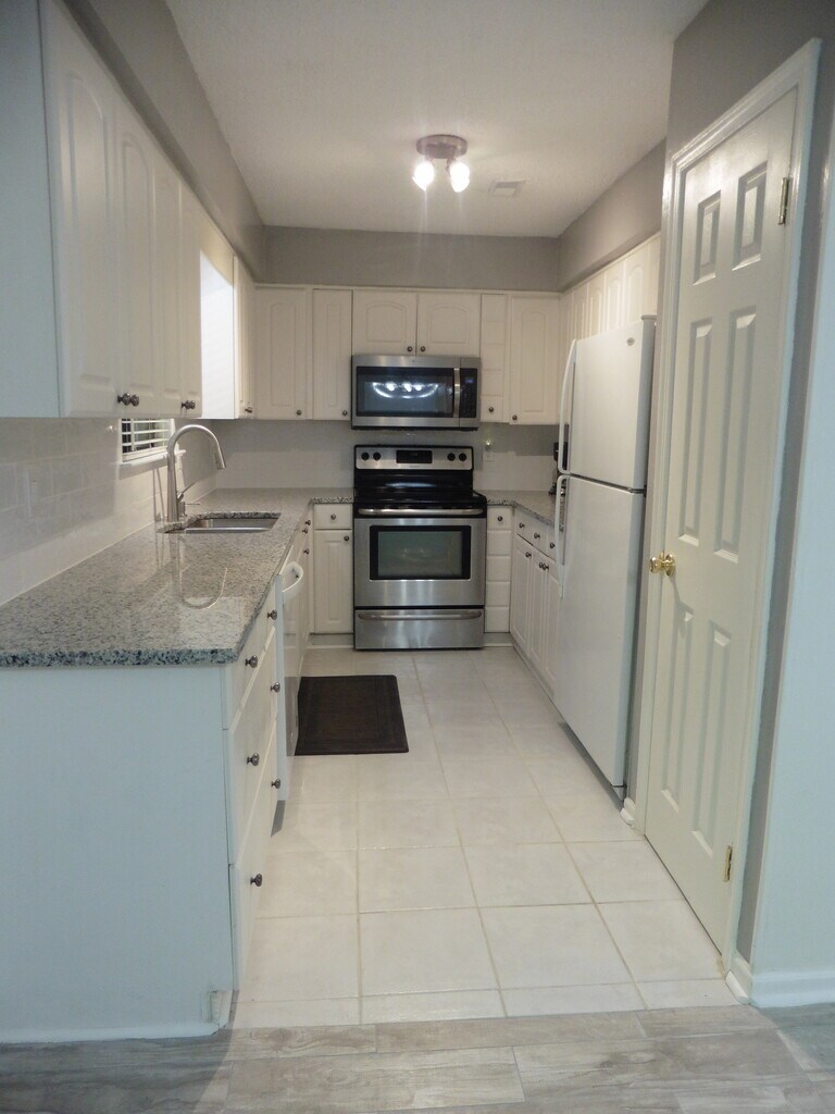 Totally remodeled 2 story 3 Bedroom, 2 1/2 BathCondo,~~Totally remodeled 2 story Condo. Beautiful kitchen with new granite counter tops and subway back splash. Newly installed modern wood-look porcelain floor tiles downstairs and all new carpet upstairs. New kitchen appliances and laundry room with washer and dryer. Large master bedroom off back, nice size spare bedrooms with lots of closets. New light fixtures and new ceiling fans in all three bedrooms. Ceramic tile in foyer, kitchen and bathrooms. Two nice-sized fenced in patios (front & back) with attached storage shed in back patio. Near Triangle Town Center and convenient to US 1/440/540.