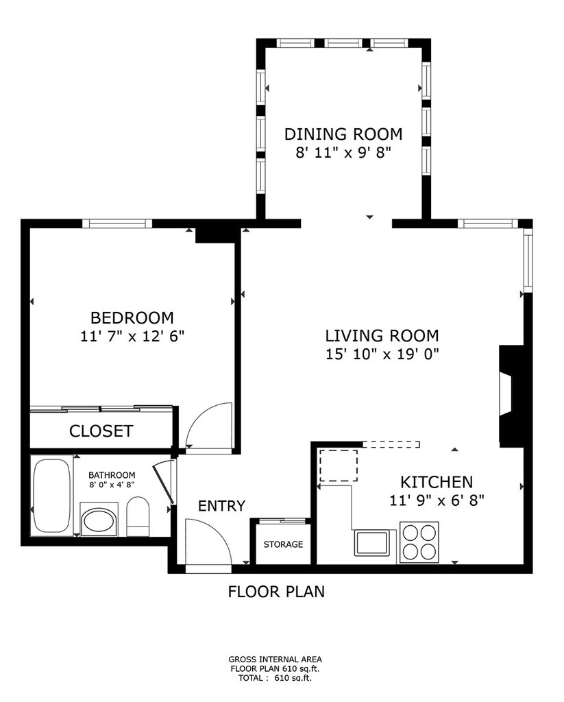 1 Dormitorio, 1 Baño, 615-789 pies²Disponible Apr 1Galería del Modelo