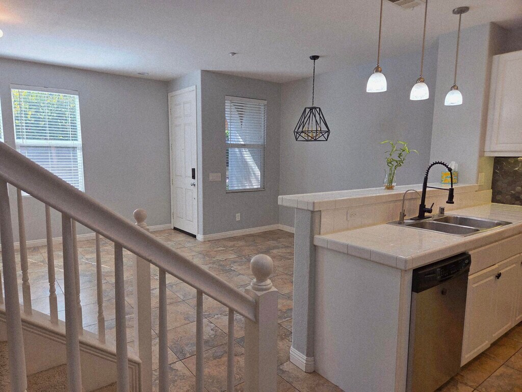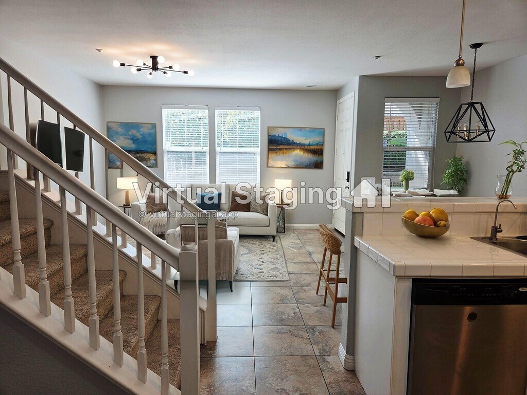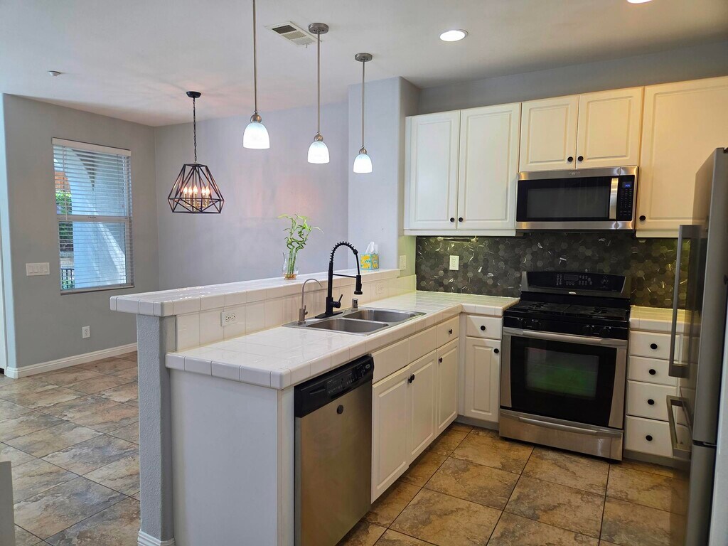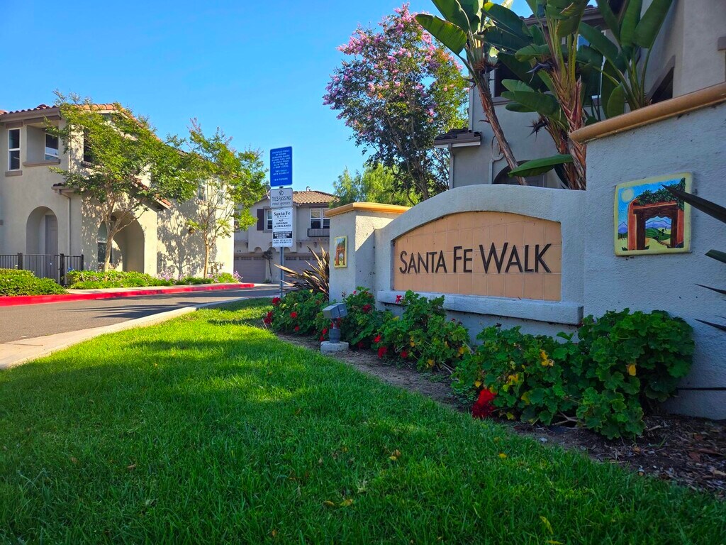 Welcome to this gorgeous, modern 3-bedroom, 2.5-bath townhome in the sought-after Santa Fe Walk community, just steps from historic Downtown Vista. The interior features upgraded appliances, designer finishes, and a layout that perfectly balances functionality with style. Enjoy the convenience of walkability to shops, restaurants, breweries, and public transit all in a vibrant, growing neighborhood. Interior Features Modern interior design with open-concept floorplan Upgraded kitchen appliances including stainless steel refrigerator, stove, microwave & dishwasher Beautiful art-deco tile backsplash, under-cabinet lighting, and bar seating Generous pantry and cabinetry for storage Designer tile flooring downstairs, plush carpeting upstairs Spacious primary suite with walk-in closet, dual vanities, soaking tub, and walk-in shower In-unit laundry with washer & dryer included upstairs Central A/C, ceiling fans, and energy-efficient lighting throughout Outdoor & Community Features Private fenced front patio perfect for morning coffee or evening relaxation Attached 2-car garage with direct access Pet-friendly home pets considered with deposit and monthly pet fee Community features include a tot lot/playground and well-maintained shared spaces HOA covers exterior maintenance and common areas Unbeatable Location Live within walking distance of all that Downtown Vista has to offer: Vista Village shopping, dining, and local entertainment Highly rated breweries, coffee shops, and weekend farmers markets Vista Transit Center (Sprinter rail) just a 7-minute walk Easy access to parks, cultural venues, and the 78 freeway Costco - 10 minute drive Cal State San Marcos - 12 minute drive California Avenue Elementary School - 2 minute drive / 5 minute walk Maryland Elementary School - 2 minute drive / 5 minute walk Roosevelt Middle School - 2 minute drive / 10 minute walk Ventura Middle & High Schools - 2 minute drive / 10 minute walk Walk Score: 72 Very Walkable Transit Score: 50 Good Transit Access Owner pays HOA fees, updated appliances included in rental, tenant is liable for appliances.