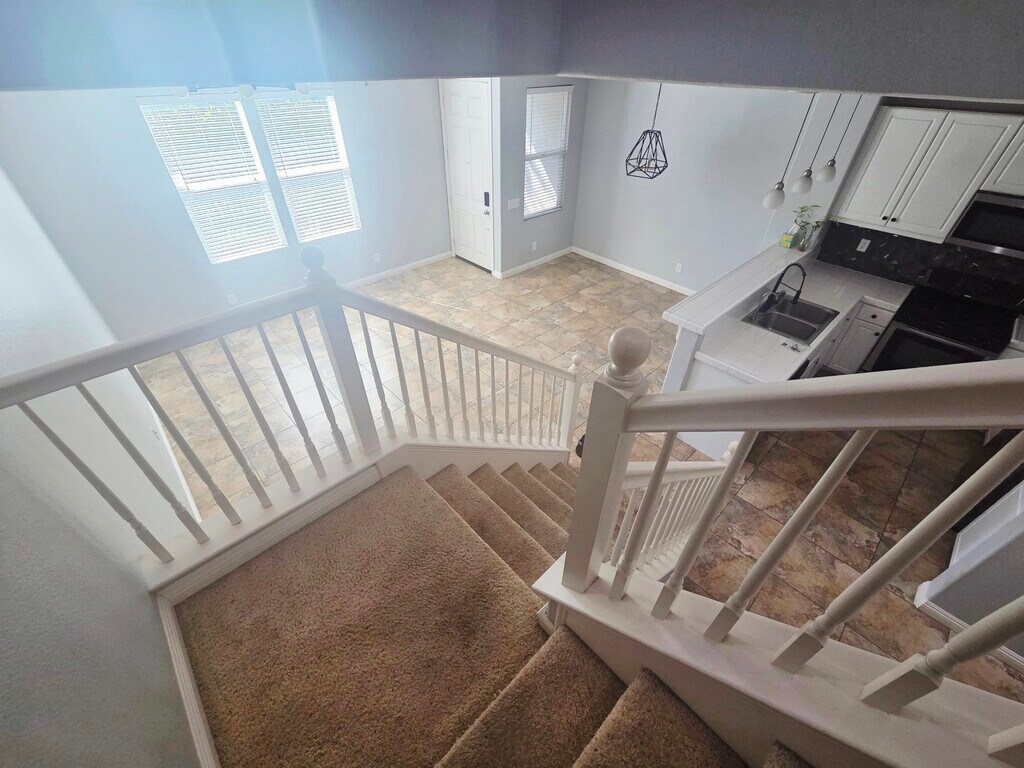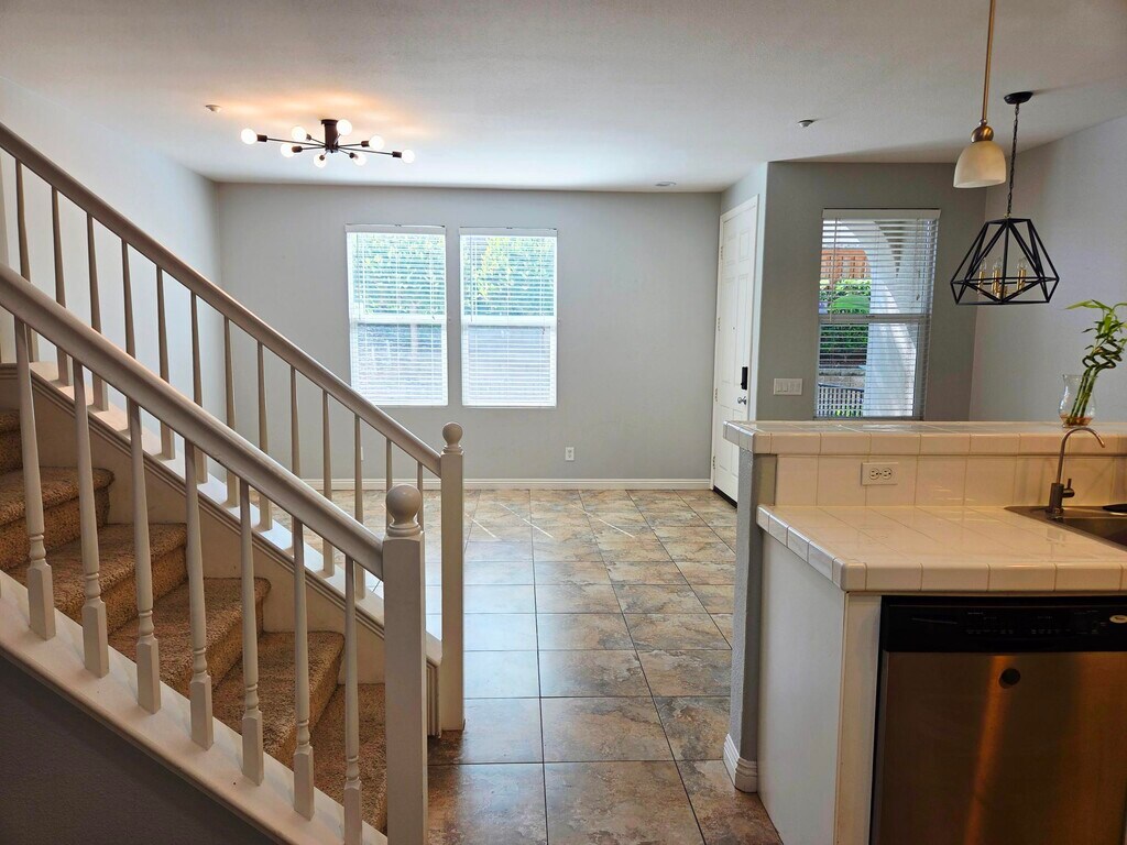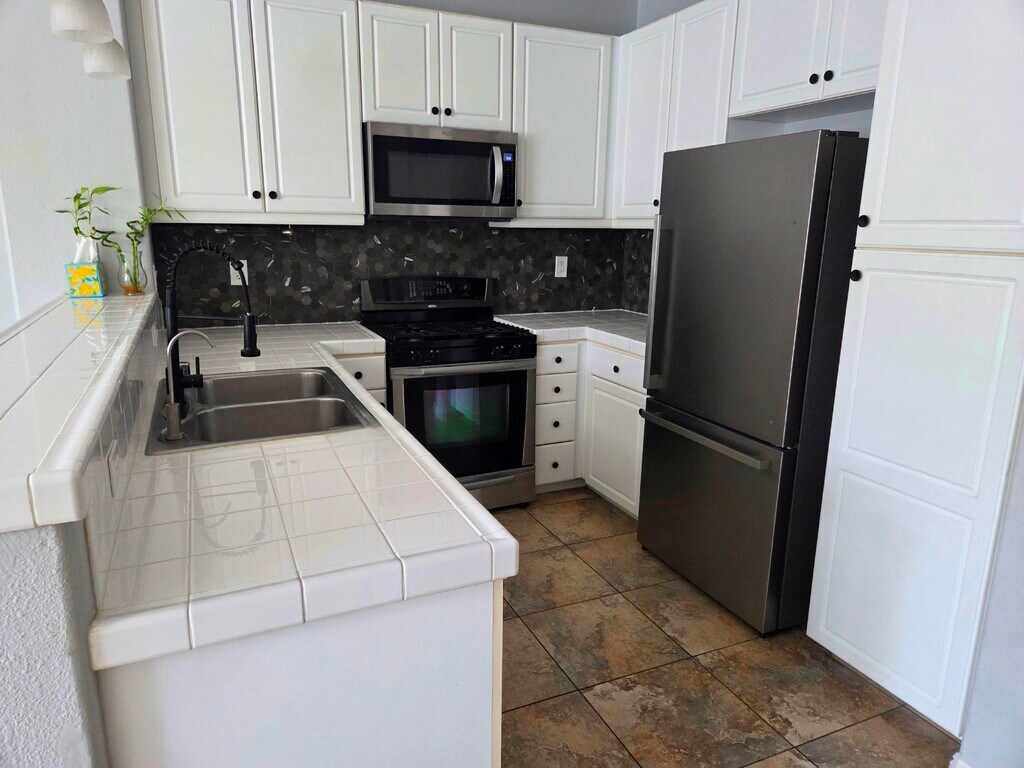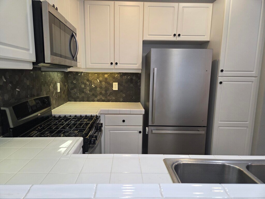 Welcome to this gorgeous, modern 3-bedroom, 2.5-bath townhome in the sought-after Santa Fe Walk community, just steps from historic Downtown Vista. The interior features upgraded appliances, designer finishes, and a layout that perfectly balances functionality with style. Enjoy the convenience of walkability to shops, restaurants, breweries, and public transit all in a vibrant, growing neighborhood. Interior Features Modern interior design with open-concept floorplan Upgraded kitchen appliances including stainless steel refrigerator, stove, microwave & dishwasher Beautiful art-deco tile backsplash, under-cabinet lighting, and bar seating Generous pantry and cabinetry for storage Designer tile flooring downstairs, plush carpeting upstairs Spacious primary suite with walk-in closet, dual vanities, soaking tub, and walk-in shower In-unit laundry with washer & dryer included upstairs Central A/C, ceiling fans, and energy-efficient lighting throughout Outdoor & Community Features Private fenced front patio perfect for morning coffee or evening relaxation Attached 2-car garage with direct access Pet-friendly home pets considered with deposit and monthly pet fee Community features include a tot lot/playground and well-maintained shared spaces HOA covers exterior maintenance and common areas Unbeatable Location Live within walking distance of all that Downtown Vista has to offer: Vista Village shopping, dining, and local entertainment Highly rated breweries, coffee shops, and weekend farmers markets Vista Transit Center (Sprinter rail) just a 7-minute walk Easy access to parks, cultural venues, and the 78 freeway Costco - 10 minute drive Cal State San Marcos - 12 minute drive California Avenue Elementary School - 2 minute drive / 5 minute walk Maryland Elementary School - 2 minute drive / 5 minute walk Roosevelt Middle School - 2 minute drive / 10 minute walk Ventura Middle & High Schools - 2 minute drive / 10 minute walk Walk Score: 72 Very Walkable Transit Score: 50 Good Transit Access Owner pays HOA fees, updated appliances included in rental, tenant is liable for appliances.