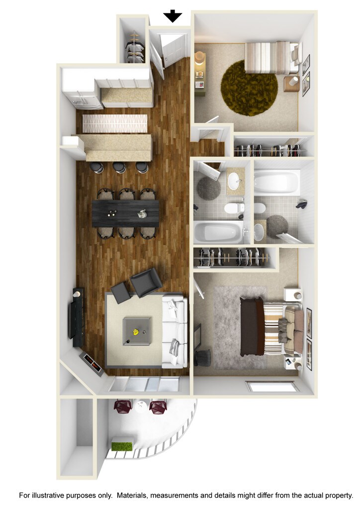 1 Dormitorio, 1 Baño, 690 pies²El más grandeEsta opción tiene las unidades más grandes para este modeloGalería del Modelo
