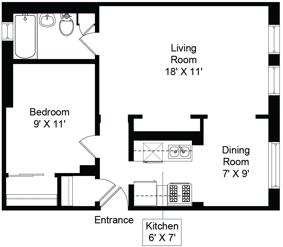 1 Dormitorio, 1 Baño, 700 pies²Detalles de Diponibilidad