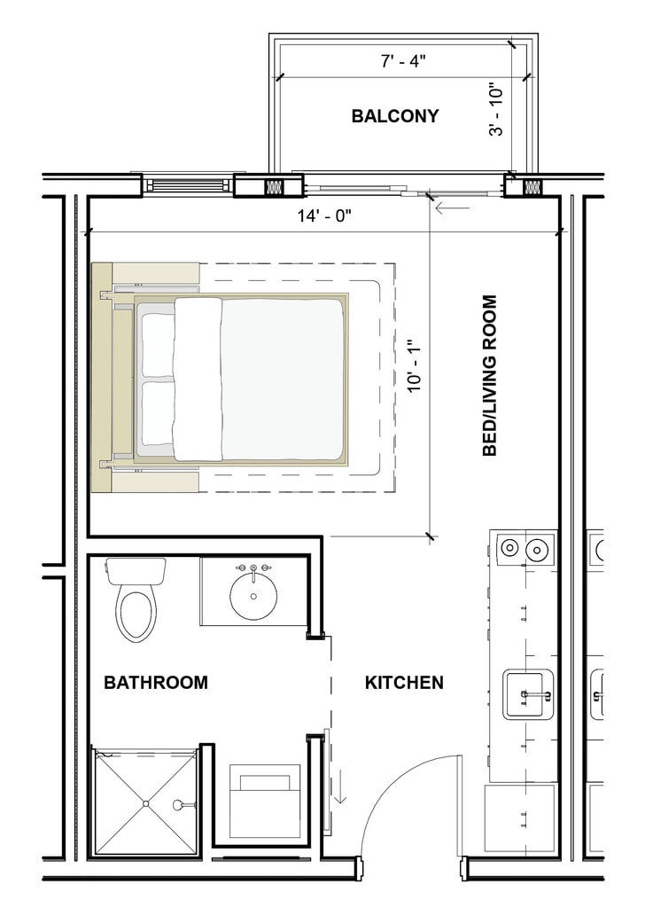 Estudio, 1 Baño, 324-367 pies²Disponible AhoraGalería del Modelo
