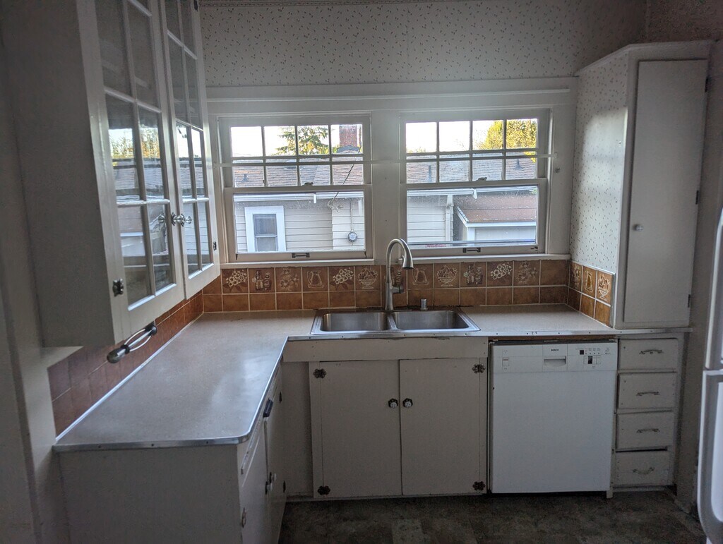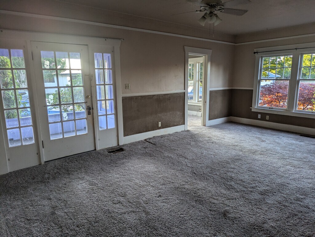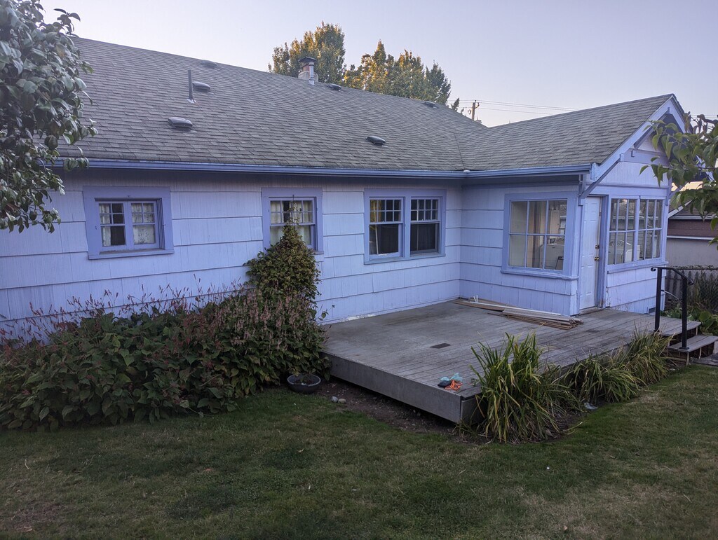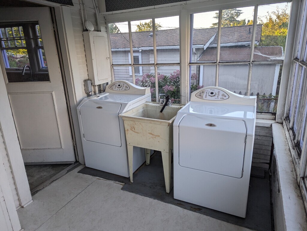Large fenced yard, detached garage/storage. Pets possible. Great location. Walk everywhere in Edmonds. Secluded home office room with lots of windows. Great for techie work from home.