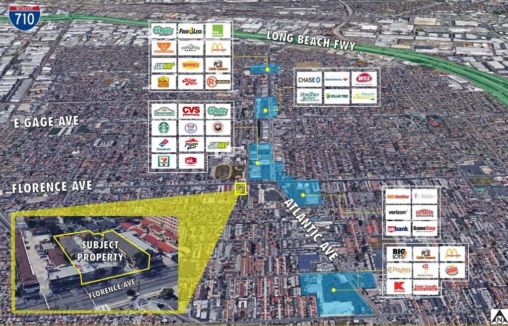 4346 Florence Ave tiene 5 centros comerciales en un radio de 0.2 millas.
