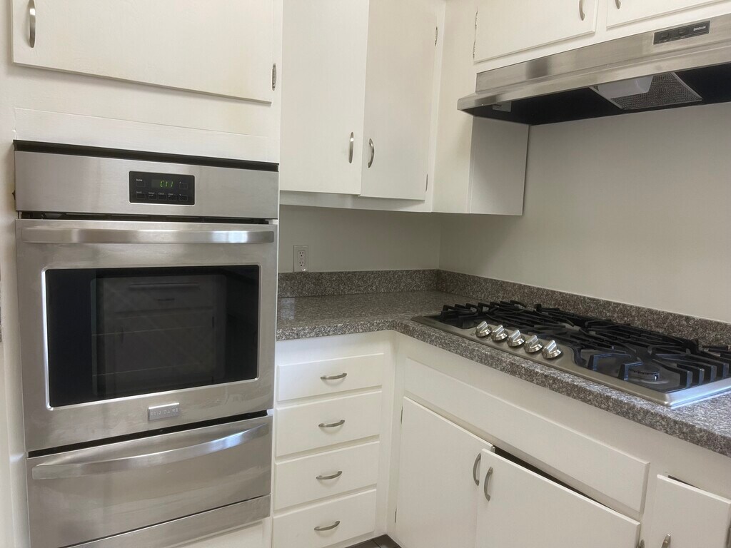 4346 Ventura Canyon Ave - Beautifully Updated 2-Bedroom Apartment in Sherman Oaks Welcome to your new home! This beautifully updated 2-bedroom, 1.5-bathroom apartment is located in a small, two-story building in the heart of Sherman Oaks. Step inside to discover a freshly painted interior with a bright and modern feel. The living spaces are designed for comfort and style. The living room is equipped with an A/C unit, and the den and kitchen area feature tile floors, perfect for easy cleanup. You'll find engineered wood floors in the rest of the apartment, adding warmth and elegance. The kitchen is a standout with its sleek white cabinets and stainless steel oven/stovetop range, offering plenty of storage space for all your needs. Enjoy year-round comfort with double-pane windows and blinds throughout. Each bedroom has its own A/C unit and ceiling fan, and there's an additional fan in the den, ensuring a comfortable temperature no matter the season. The building offers peace of mind with an intercom entry, surveillance cameras, and a gated property. Additional perks include shared laundry facilities and optional carport storage for just $15 a month. We cover the cost of water, gardening, refuse, and pest control. This apartment is a must-see to truly appreciate its charm and features. At $2,395.00 a month, it's a fantastic value in a desirable location. Contact us today to schedule a viewing!