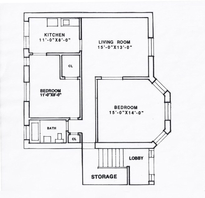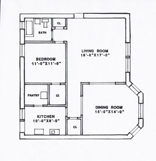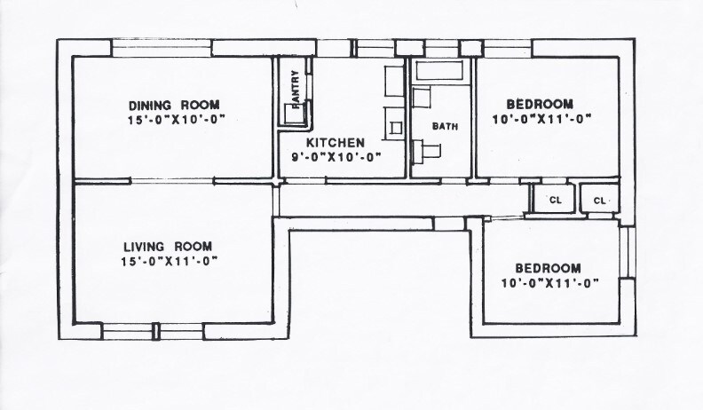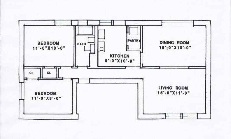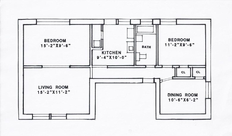 2 Bedroom - 1 Bathroom - Plano 4 ![]()