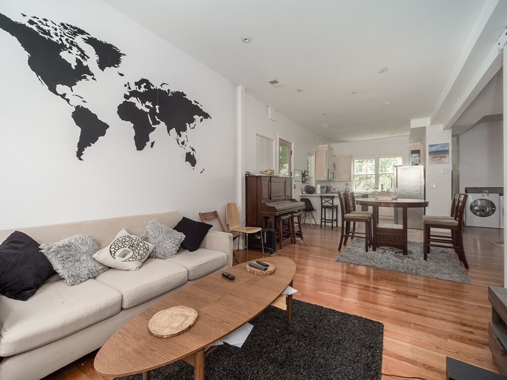 - Stretch out in Jamaica Plain! Fully renovated, sprawling 5 bed 3 bath duplex is conveniently located on the north side of JP with easy access to the Orange Line, Hyde Square, the Longwood Area and more! The first floor of this duplex unit offers an expansive open floor plan featuring kitchen with quartz peninsula and a full compliment of appliances along with living and dining areas with tall ceilings, hardwood floors and recessed lighting. Two queen-sized bedrooms and modern bath complete the first floor, while ground level offers three additional bedrooms, and two more full baths. Laundry in unit and private deck too! Central AC. Cats negotiable. Great size and value! Driveway can be included for additional rent (2 tandem spots)