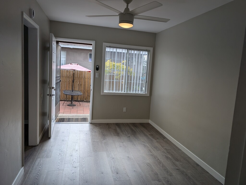 Small, quiet complex near to SDSU, with convenient access to freeways. Courtyard furniture under the shade of trees. Unit is move-in ready and available now. 2 person maximum, no pets.