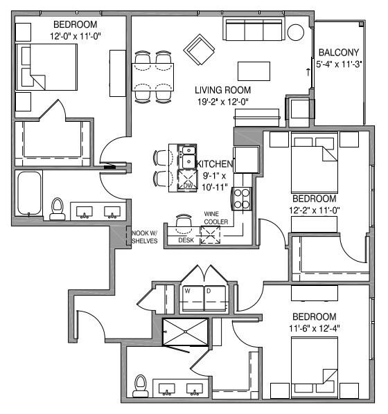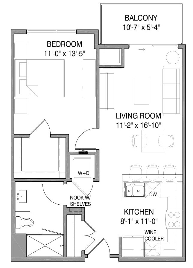 Estudio, 1 Baño, 822 pies²Disponible AhoraEl más grandeEsta opción tiene las unidades más grandes para este modeloGalería del Modelo