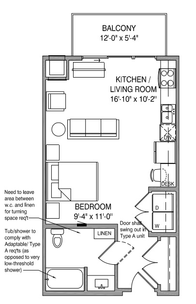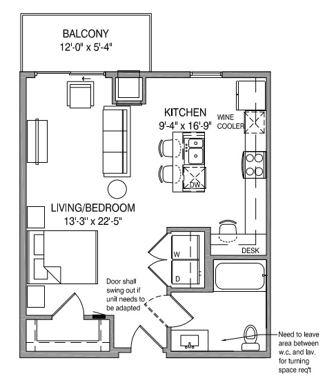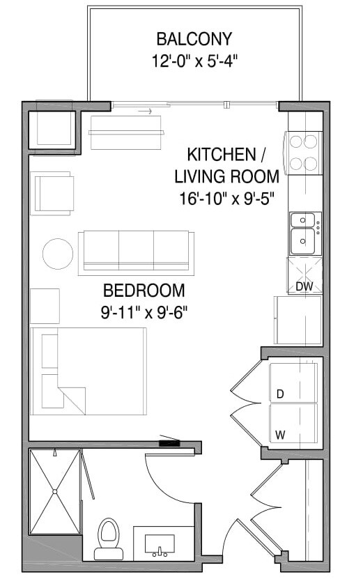 Estudio, 1 Baño, 475 pies²Galería del Modelo