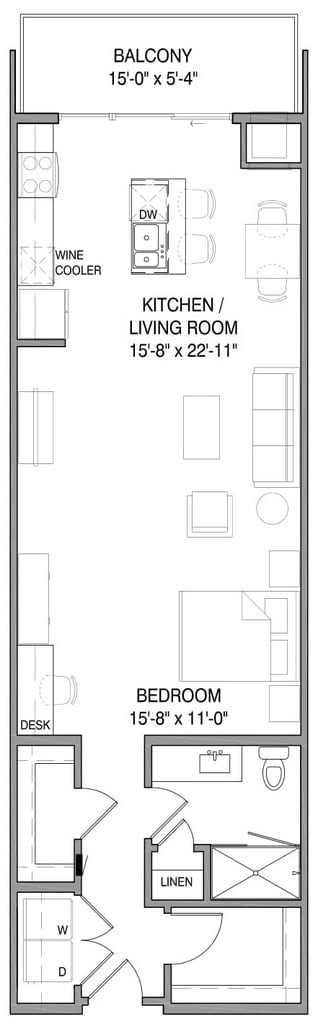 Modelo de apartamento: StudioLlame para PreciosEstudio, 1 Baño, 636 sq ftNo Disponible![]()