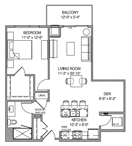 Modelo de apartamento: StudioLlame para PreciosEstudio, 1 Baño, 475 sq ftNo Disponible![]()