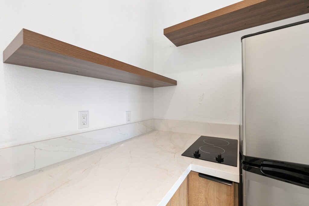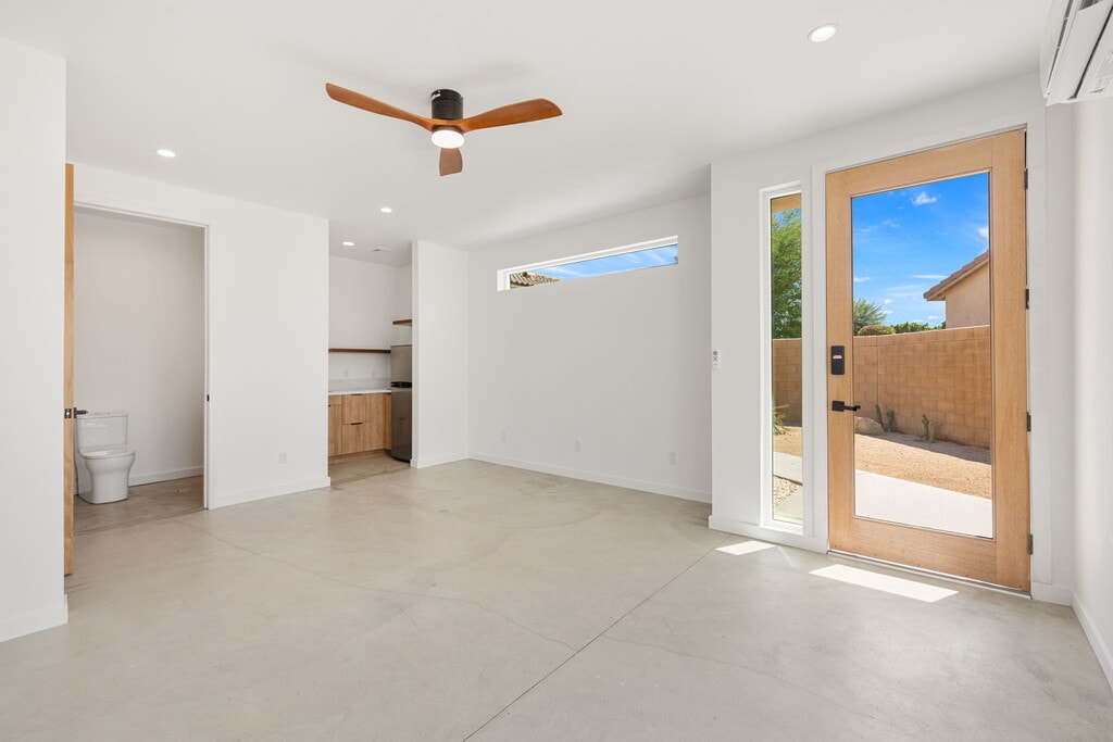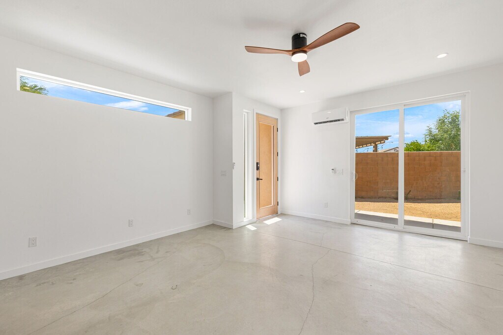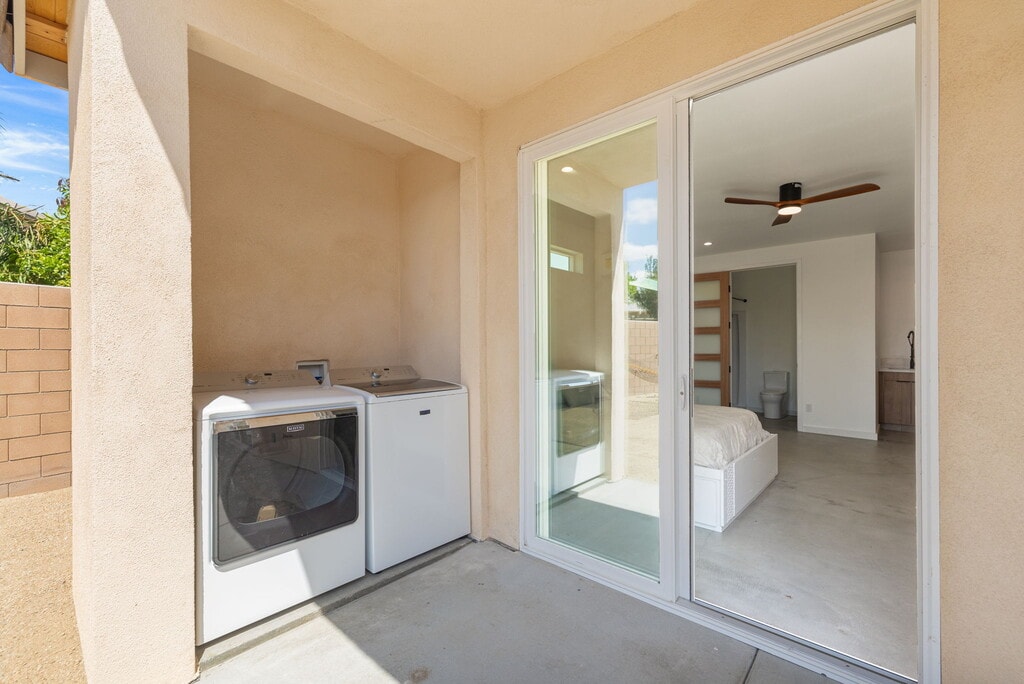 Gated and Newly built unit with modern amenities including 24/7 washer/dryer, outdoor fireplace, patio furniture, BBQ, spacious covered patio and hammocks for relaxing. Interior offers high ceilings, ceiling fan, standard size refrigerator, two burner cook top, microwave, lazy susan,led mirror in bath with upgraded shower, private entry and yard shared with one unit. Situated completely separate from main house with its own private entrance. Utilities include: Water, Gas, Electric, Trash, landscape and Wifi.