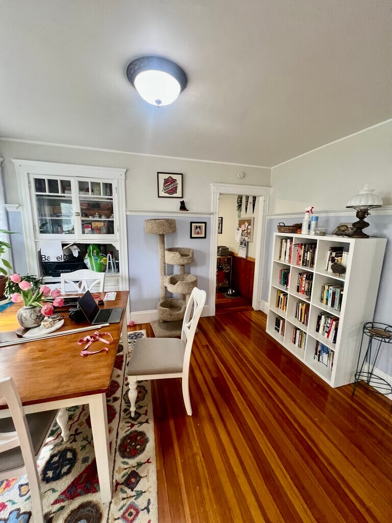 Available September 1st, Teele Square/Mass Ave location . Bright, spacious, sunny two large bedroom apartment on the first floor of a two family house, front and back porches, Eat in Kitchen, Large Living Room, Formal Dining Room, one full all new bathroom, own separate laundry in the building, hardwood floors, lots of light, street parking, garden and rear view of the park, on the Cambridge line, walk to Mass Ave and Teele Square, 15 minutes walk to Davis Square and the Red Line T stop, professionally managed, $3,600 per month plus utilities, cats Ok, walk score of 90.