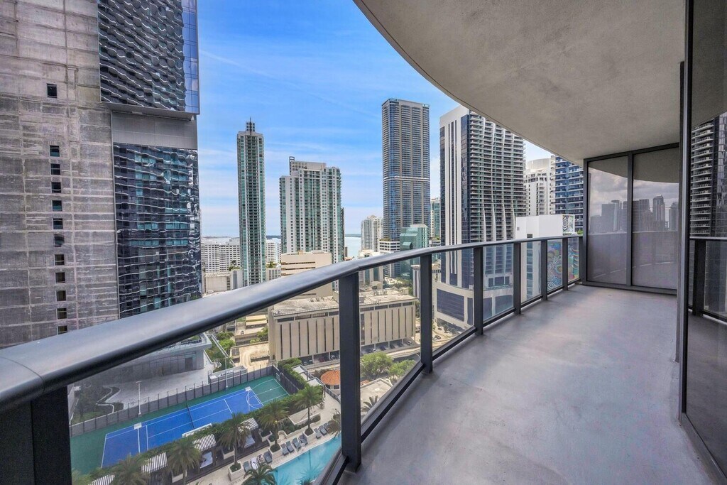 CORNER UNIT with City and Bay View! Rare find with SELF-PARK parking space. Split floor plan and extensive WRAP-AROUND BALCONY. 2 Beds and 2 Full Baths, freshly PAINTED. AMENITIES: 24/7 concierge, 2 pools (1rooftop pool), Jacuzzi, Fitness Center, Steam Room, Sauna, Spa Area, Business Center, Theater, Playroom, lounge, and Bike Storage. LOCATION: next to Brickell City Centre, 3 blocks from the I-95 highway and a supermarket across the street. Unit is VACANT, ready to move in. This listing is a courtesy of Stefania Mogollon, EXP Realty LLC. Due to a high volume of spam calls please submit your request via email.