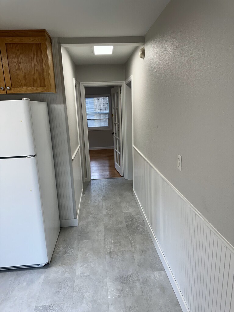 Spacious and light this 2 story upper unit in an old Portland Style home lives like a "real" house. From the well equipped kitchen to the new tile floors and beautiful original wood flooring, this is unusual and special. The main floor living and dining room with a built-in buffet, give way to a large kitchen with a washer and dryer adjacent to the kitchen in a closet with french door. A hallway leads to a main floor bathroom, and a bedroom or office. Carpeted stairs lead upstairs to a loft area and a large bedroom. The walls and trim work were completely repainted last year. Rent includes water and sewer, standard garbage and recycling, and biweekly landscape maintenance. Renter pays for electricity and gas. Unit has a gas heater on the main floor and electric baseboard on the second floor. The unit is located on a double lot which currently allows for additional parking for renters. Owner may develop vacant lot in the future. One dog and/or one cat are allowed with approval. Certain breeds are restricted. Monthly pet rent fee applies. The location offers easy access to Barbur Blvd, Portland Community College, OHSU, Hwy I-5, and the transit center. Woods Park trails are within a short walk of the house.