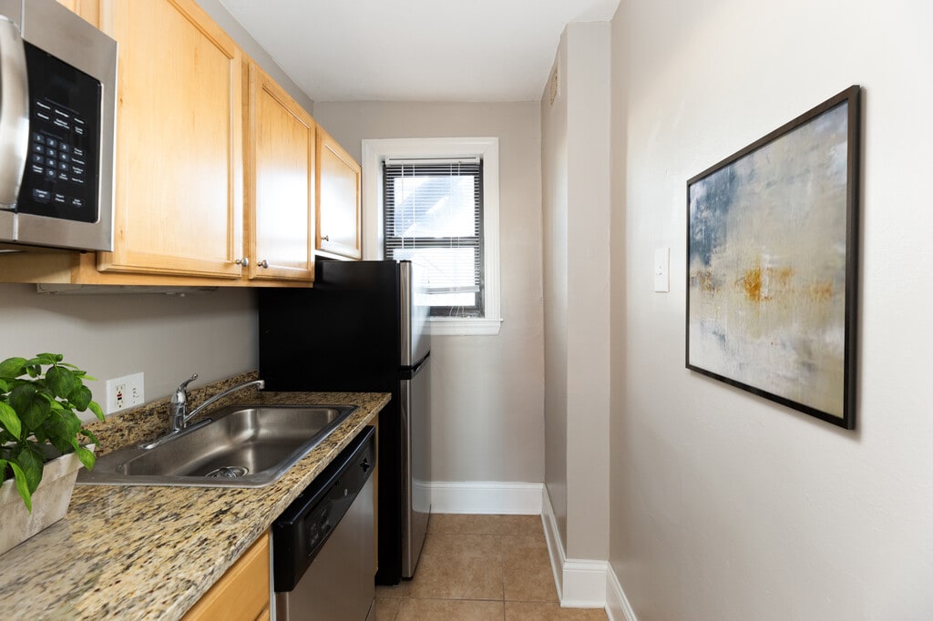 July 22, 2015This is a BJB Properties managed building, and my unit is a studio. It's the nicest studio I've ever lived in. Kitchen is its own area, through an arched doorway, quite out of sight from the living area. It's on the small side, but they managed to squeeze in a dishwasher, and there's plenty of cabinet space. The walk-in closet (you walk through it to get to the bathroom) is very nearly big enough to sleep in as an extra bedroom. And it has a door. The living area is standard, with hardwood ...floors, radiator heat, and window a/c units provided gratis by the building. Hallways are carpeted, which helps a lot with noise. And the walls and cielings must be pretty thick, cause I rarely hear anything other than a chair scraping or someone vacuuming. But then, faintly. There's a rooftop deck that's open sunrise to sunset that they just refurbished. It could comfortably fit 10-15 sunbathers, and features a great view of the lake and Lincoln Park, as well as the skyline. No big buildings obstructing the view pretty much all around the panorama. Laundry in basement, in a workout room. Lobby is almost luxurious, and has a doorman till around midnight. And the location? Well, it's a shady street that spills out onto the park. The whole thing smells like trees and flowers. Several bus lines at one end of the street, several at the other. Two Starbux within sprinting distance, Clark street shopping and dining a stagger away. Trader Joes a five minute walk. Hospital around the corner. So what's the knock on the place? I'd kill for an extra foot or two of counterspace in the kitchen. And if you're on the courtyard side, any noise from the street echoes a bit. But it's a pretty quiet neighboorhood sidestreet, so it's quite tolerable. Oh. And there's free internet and cable (wall tether, plug in your own router -- no sharing of bandwith). Friends of mine come over and are impressed, but they don't know the half of this place's charm. Highly recommend.Leer MásReseña de Apartments.com