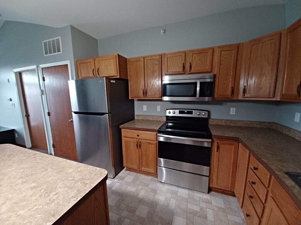 Arrendamiento de 12 meses, depósito de 900 USD, disponible el 1 de febrero de 2024 Este apartamento de 1 dormitorio, recientemente renovado, parcialmente amueblado y muy amplio, con techos abovedados, es un lugar QUE LOS arrendatarioS DEBEN VER. Diseño de concepto abierto. Habitación del dormitorio principal con amplio baño en la suite. La unidad también viene con su propia lavadora y secadora en el interior. Gran cocina con mesada en la isla y nuevo lavaplatos de acero inoxidable, horno de microondas y estufa. Terraza/patio para caminar con increíbles vistas a la puesta de sol. La unidad incluye un garaje de un automóvil cubierto no conectado con capacidad de apertura automática de la puerta del garaje, perfecto para estacionar y almacenar más. Apartamento ubicado en un edificio privado y seguro, la entrada al edificio requiere un código de llave para ingresar. Las amenidades adicionales incluyen un gimnasio de acceso automático en el primer piso con máquinas cardiovasculares y equipo de levantamiento de pesas, un buzón privado cubierto dentro del edificio con llave y un área de lounge en el piso principal. Papelera, mantenimiento del edificio, remoción de nieve, complejo de apartamentos y gimnasio las 24 horas incluido. No se incluye gas, agua, cable, electricidad ni Internet. Excelente ubicación cerca de los restaurantes de compras Cy-ride, el campus de la ISU, gasolineras, fácil acceso a la Hwy 30 y la I-35. A solo 10-15 minutos en bicicleta del campus de la ISU y a un corto paseo de las paradas de Cy-bus. Disponible el 1 de febrero de 2024.