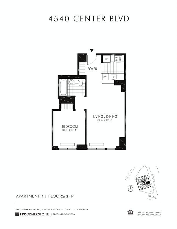 1 mes OP (NE). Los precios enumerados son alquileres netos en efectivo con un contrato de arrendamiento de 13 meses. ¡1 mes de alquiler amortizado* disponible en apartamentos seleccionados! Los incentivos se aplican para los nuevos residentes únicamente. Depósito de seguridad de $1,000 - se aplican exclusiones. VIVE EN EL CENTRO DE TODO: Delimitando con el extremo norte de TF Cornerstone’s Center Boulevard, con vistas a East River, Anable Basin y Esplanade, 4540 Center Blvd ofrece lujo y comodidad. El edificio, diseñado por la galardonada firma de arquitectura Arquitectonica, ofrece una variedad de apartamentos tipo estudio de una, dos y tres habitaciones. Las 345 viviendas en alquiler tienen impresionantes pisos de madera noble, techos altos y ventanas del piso al techo, lo que permiten tener gran cantidad de luz natural y espectaculares vistas panorámicas a la ciudad y al río. Los residentes también disfrutan de cocinas de diseñador y baños equipados con accesorios de alta calidad y acabados modernos. En el exterior, la terraza con jardines es el lugar perfecto para recibir invitados o descansar plácidamente después de un largo día. 4540 Center Boulevard es un conveniente viaje de cuatro minutos en metro cerca del área media de Manhattan en el tren 7, y accesible a G, los trenes E y M, East River Ferry y el puente Pulaski. Hecha de una construcción completamente nueva, esta área a lo largo de Center Boulevard cuenta con 12 acres de parques en la ribera, una escuela primaria pública K-8, tiendas y restaurantes, mercado de alimentos Cellar, Duane Reade, y MoMA PS1, todos a una caminata de distancia de 4540 Center Boulevard. Para obtener más información sobre 4540 Center Boulevard, llama al 718-606-9440.