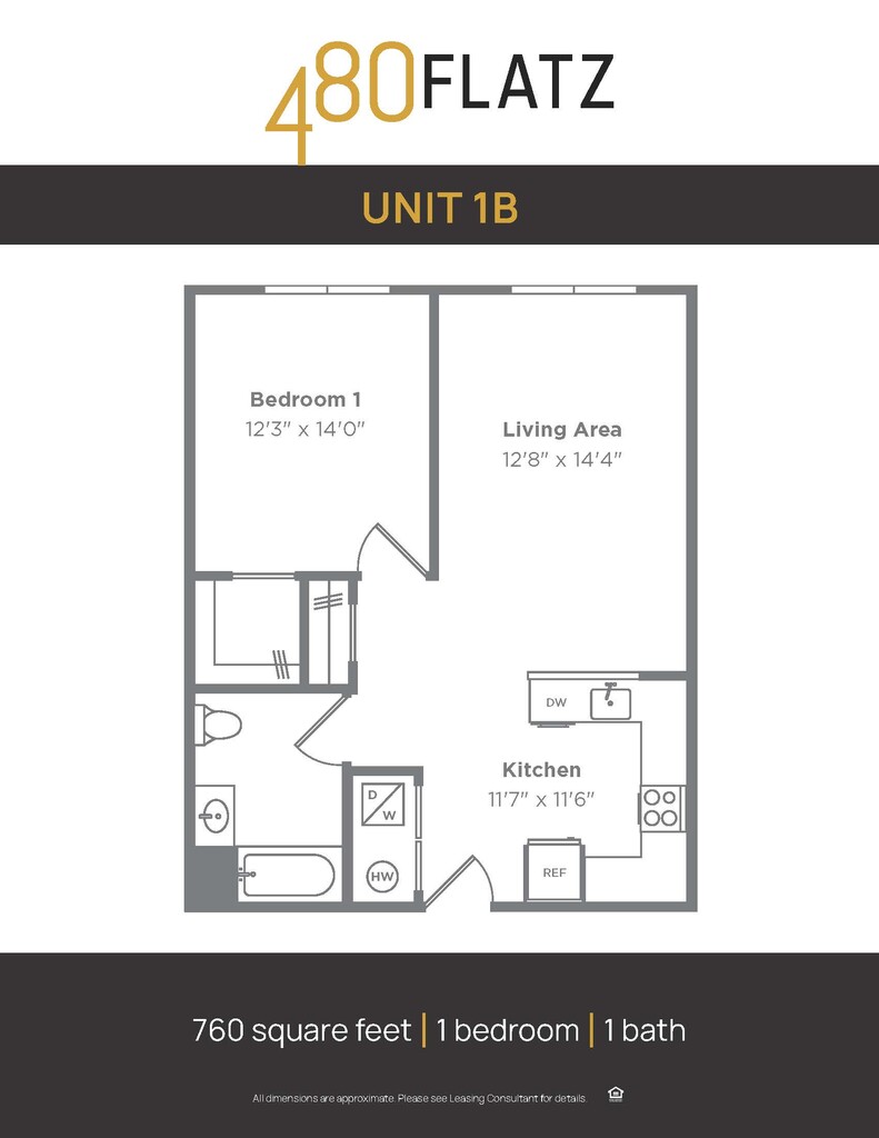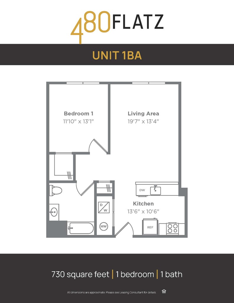 1 Dormitorio, 1 Baño, 637-760 pies²Galería del Modelo