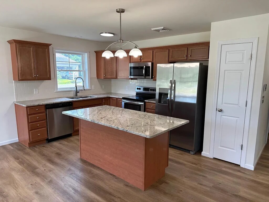 Apartamento de estilo casa adosada de 1200 pies cuadrados con un año de antigüedad y acabados de lujo de alta gama, que incluyen encimeras de granito con isla, electrodomésticos de acero inoxidable, chimenea eléctrica, baño grande con tocador de dos lavabos, patio con división de privacidad y lavadora/secadora. Se puede caminar hasta el pueblo de Ballston Spa. Comunidad de más de 55 personas.