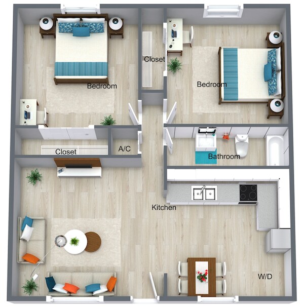 Modelo de apartamento: RenovatedDesde $1,3992 Dormitorios, 1 Baño, 707 sq ftDisponible Ahora![]()
