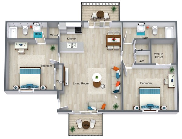 Modelo de apartamento: Partial RenovatedDesde $1,3992 Dormitorios, 2 Baños, 808 sq ftDisponible Ahora![]()