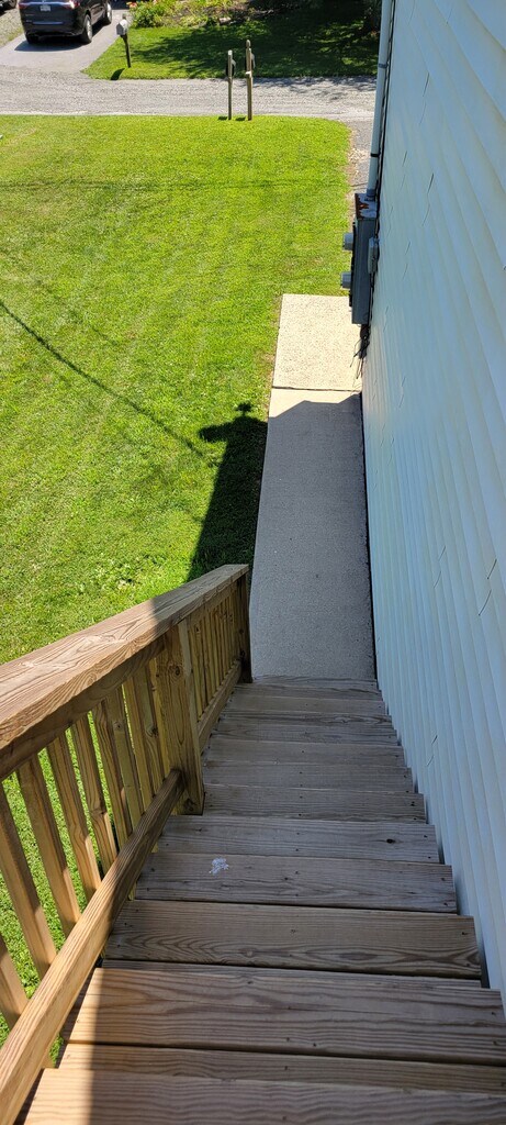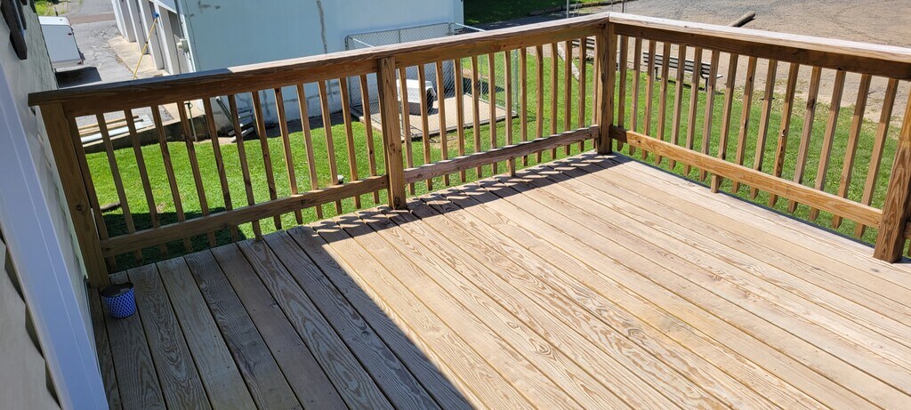 Recently painted 2nd floor with private deck. 2 bedroom, laundry room with hookup. Included water and sewer. 2 private parking spots. Small pets considered for an upcharge.