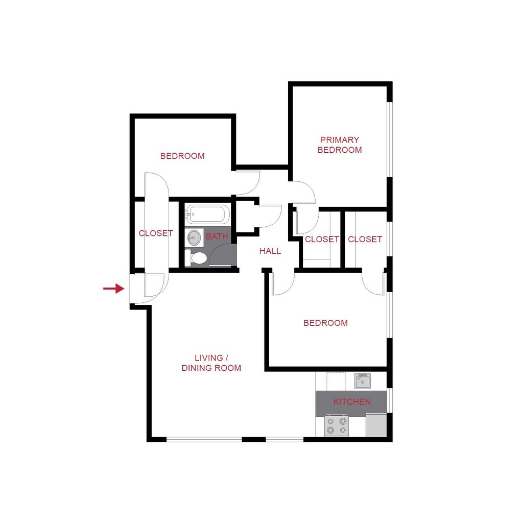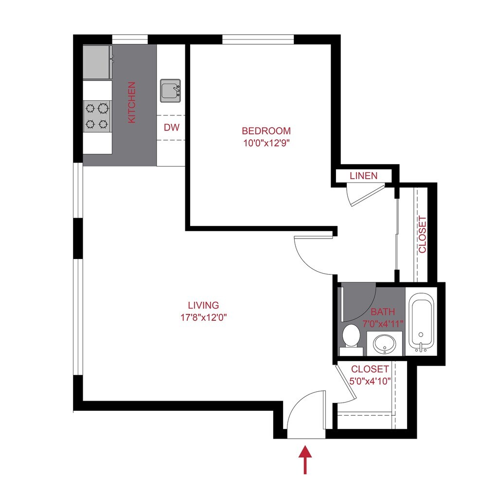 Modelo de apartamento: 251.B12 Dormitorios, 1 Baño, 830 sq ftDisponible Ahora![]()