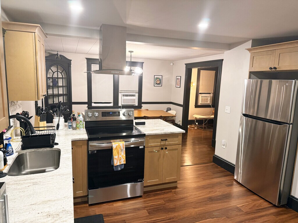 Freshly Renovated single family house with Off-Street Parking & Garage – Prime Location Near T Station! Don’t miss this beautifully refreshed and move-in ready apartment, freshly painted and thoughtfully updated throughout! This spacious home features generously sized rooms with classic natural woodwork and charming details, including an enclosed front porch and a built-in corner hutch that adds a touch of character. Enjoy a bright kitchen with a brand new refrigerator and stove, while the partially finished basement offers tiled flooring – perfect for additional living space or storage. Modern upgrades include a newer furnace and hot water heater (both installed in 2020), providing peace of mind and energy efficiency. The first-floor bedroom offers convenient direct access to a full bathroom (note: bathroom entry is adjacent to the closet and not reflected in the floor plan). Step outside to a private backyard oasis complete with a patio – perfect for relaxing or entertaining. Additional highlights: • Off-street parking plus a garage • Quiet, well-kept yard space • Excellent commuter location – just moments from the T station • Close to shopping, dining, and major routes This home is a perfect blend of classic charm and modern convenience – ideal for anyone seeking comfort, space, and easy access to city life. Schedule your showing today!