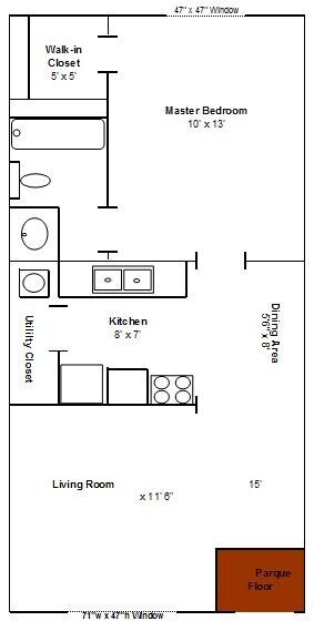 Our one bedroom apartments feature plank flooring, on-site laundry with extra storage room. Close to downtown shopping and restaurants.