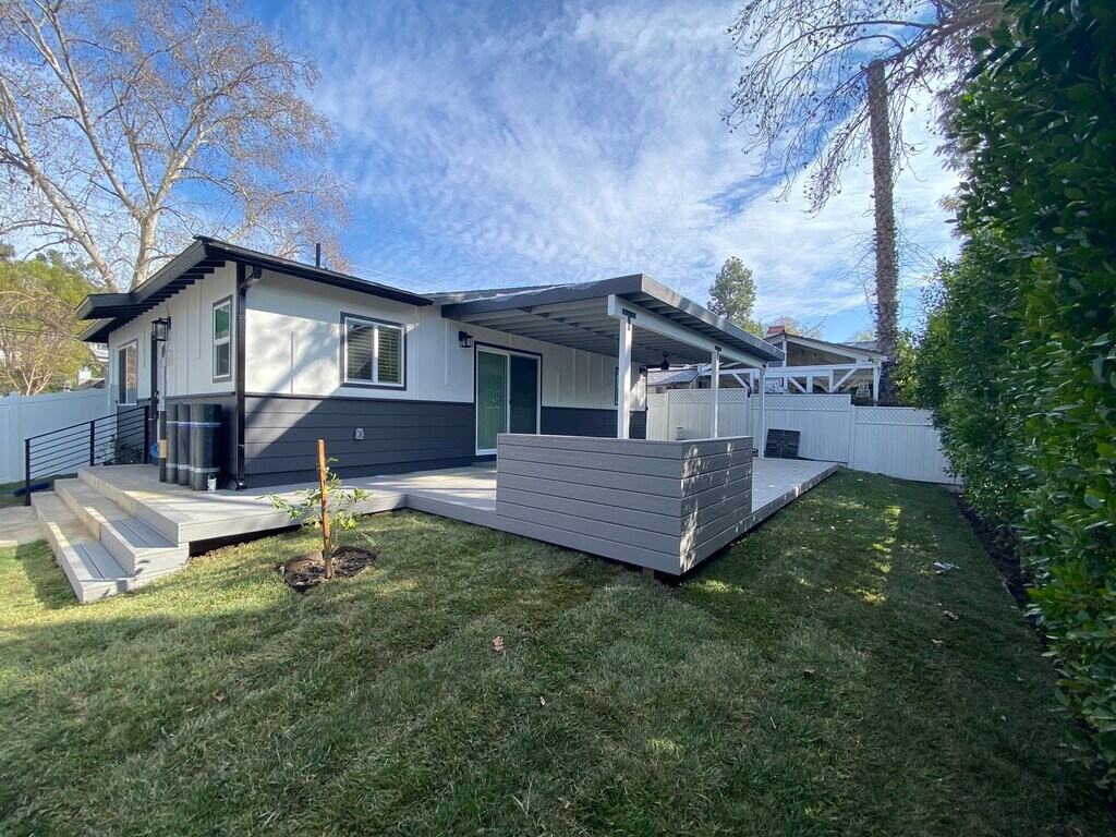 charming house like duplex, all new construction. This property has 2 bedrooms +2 full bathrooms, Living Room, new open plan Kitchen , new cabinets quartz counter tops, Laundry room, exercise room/ garage. Totally remodeled house, central heating and air-conditioning, refrigerator, dishwasher, washer and dryer, gas stove range, private yard new large covered Patio deck, 1 space parking on driveway + Street parking . large and private yard, gardening service included, great location South of Ventura blvd, 20 min. to the beach, near Warner center, Whole foods, Trader Joes, Topanga Mall, shops and restaurants. Tenant pays for utilities owner pays for gardener Showing is by appointment only,