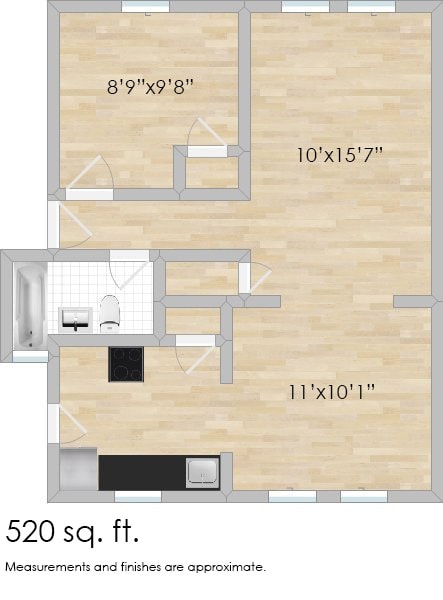 1 Dormitorio, 1 Baño, 500 pies²Galería del Modelo
