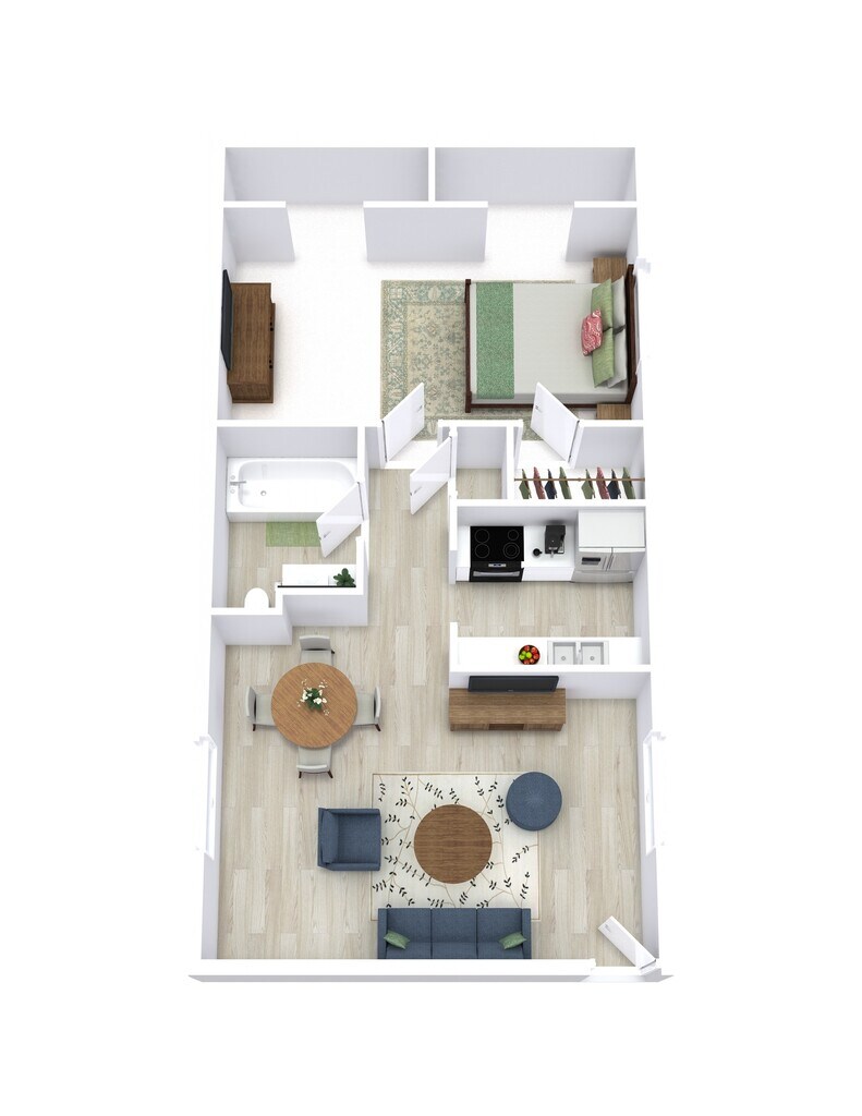 1 Dormitorio, 1 Baño, 650 pies²Disponible AhoraGalería del Modelo