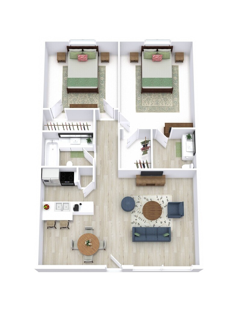 Modelo de apartamento: 1b$8991 Dormitorio, 1 Baño, 620 sq ftDisponible December 15, 2025![]()