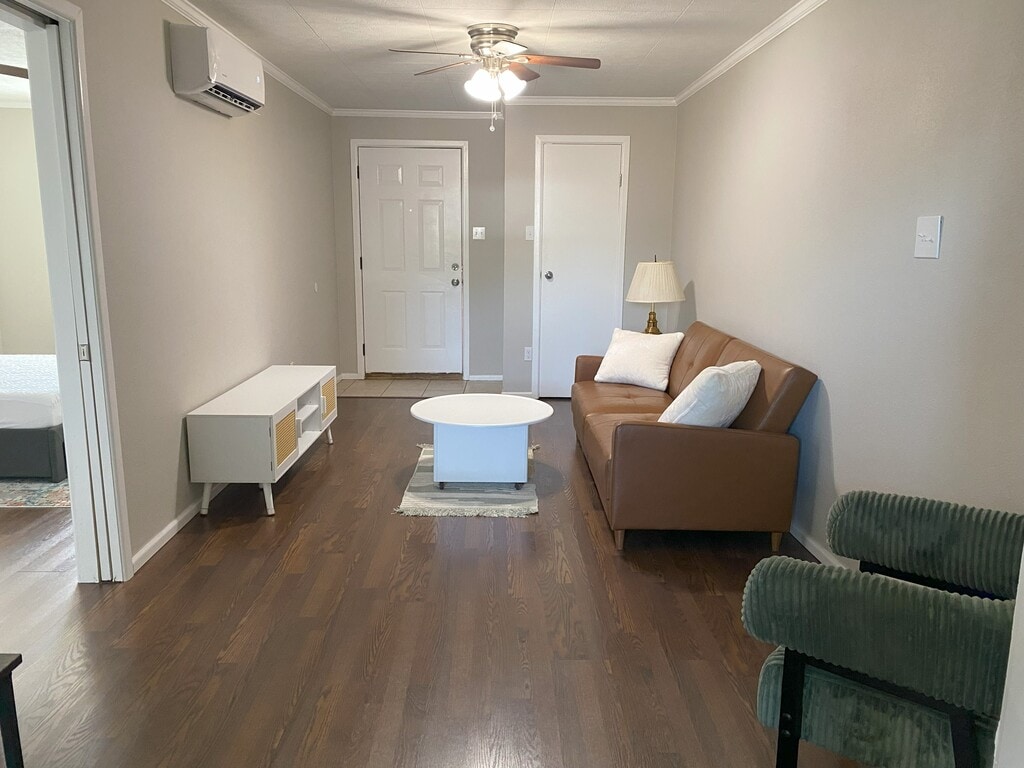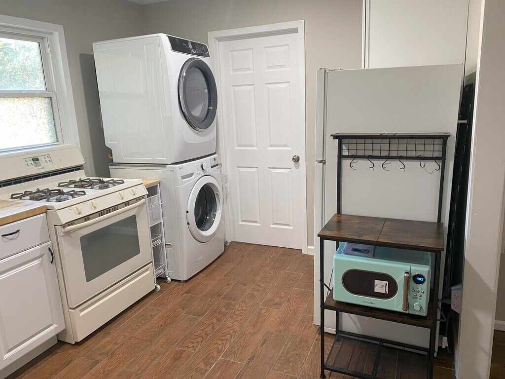 This is a small 1 bedroom/1 bath apartment is furnished, and all bills paid. The apartment comes with full sized washer and dryer, sofa, chair, fold out desk, full bed, dresser, microwave, stove, refrigerator, and small island/table. You have access to free wi-fi and off street parking.