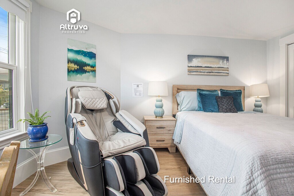This heavenly flat is located 2 blocks from Crown Beach and Crab Cove. Receive a sumptuous massage in the extravagant massage chair. Vibe with the curated vinyl record wall and nostalgic record player. This luscious flat is fully renovated from top to bottom, boasting 3 well-appointed bedrooms, 2 full baths, and the new and fully equipped kitchen. Digital nomads enjoy symmetric 1 Gig fiber optic Wi-Fi, 3 dedicated workspaces, and a 65" HD TV. BBQ, free laundry in unit, close to SF & golf course. Please note, we cannot accommodates pets in this townhome.